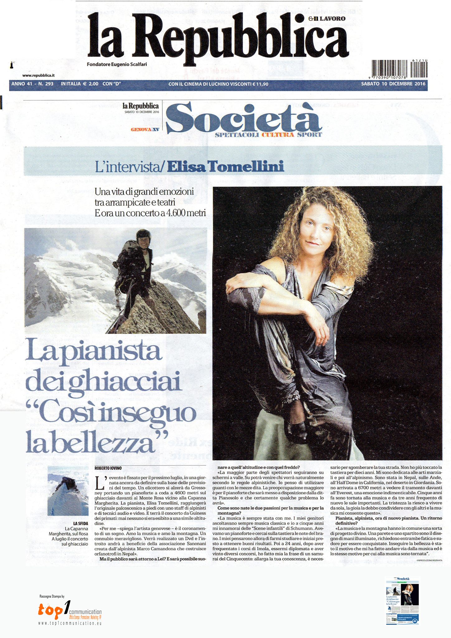 On Saturday, the 8th July at 11.45, and 4460 metres high, the ‘highest piano concert in the world’ happened, involving the Italian pianist and alpinist, Elisa Tomellini.